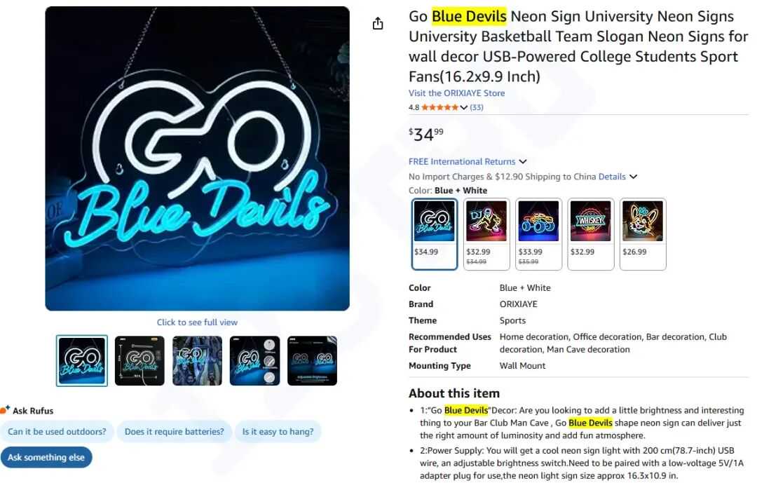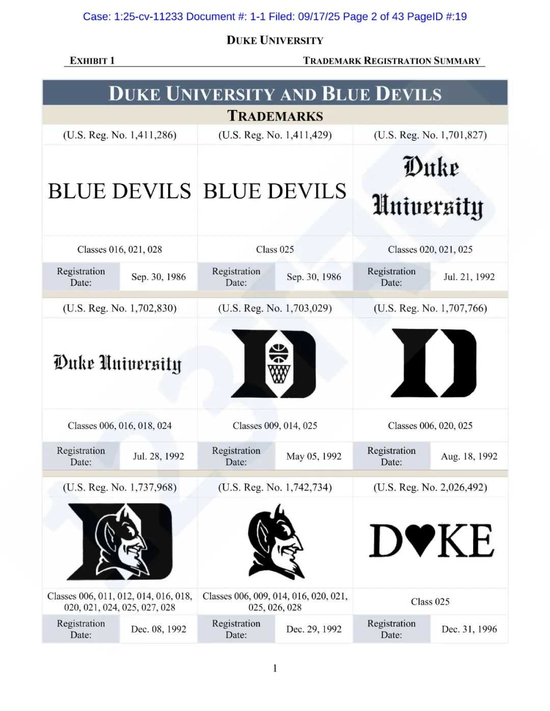 快下架蓝魔球队的周边,不然就会收到杜克大学的TRO邮件