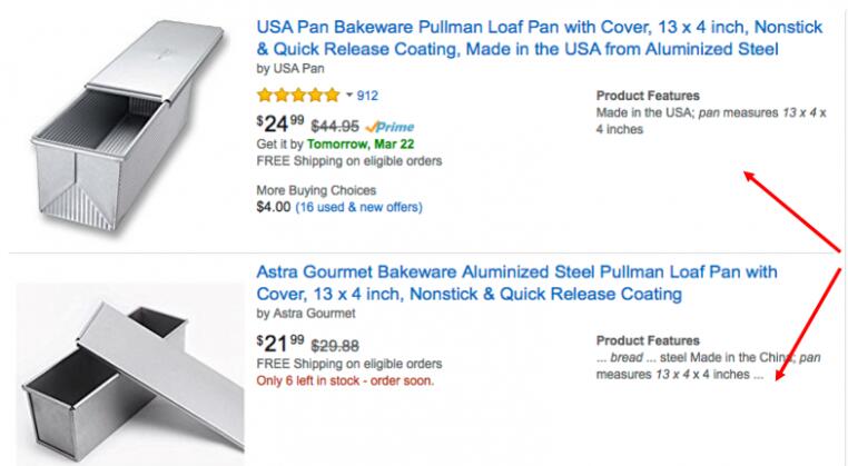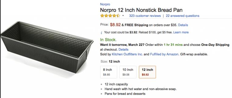 于是我又回到了第一个,注意到它的Product Features,被吸引住了,因为它说extra large loaf(特大号面包),而我正想烘焙尽可能大的面包。虽然我也喜欢它的产品图片,但最终是Product Features吸引我去点击的。