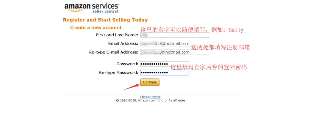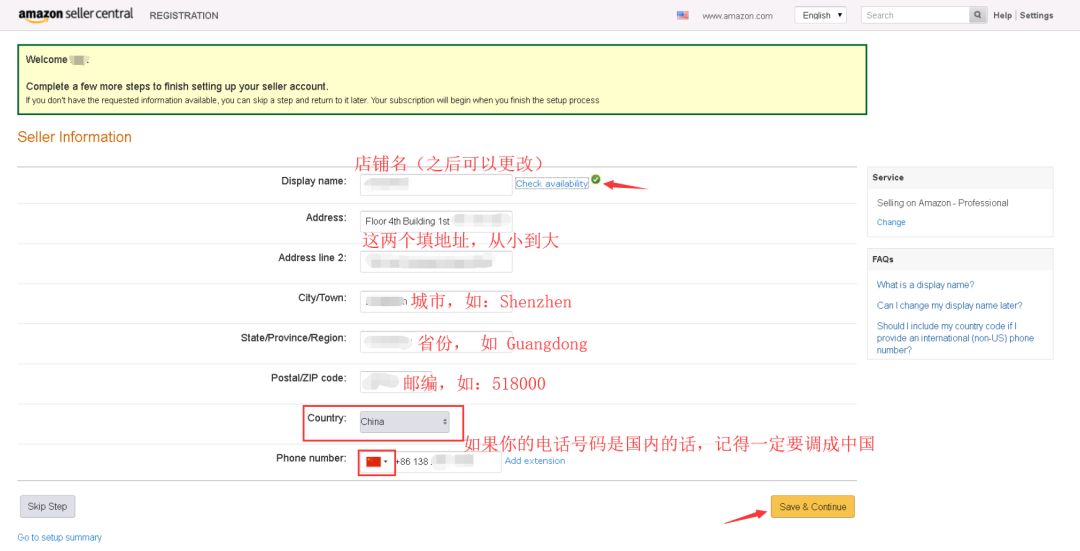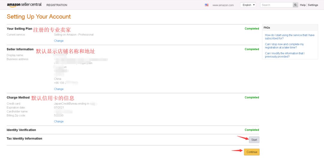 以下为招商经理邀请注册,点击邮箱里面的链接直接进入下面的页面。(如果是自己通过"Sell on Amazon"注册,流程也是一样的)