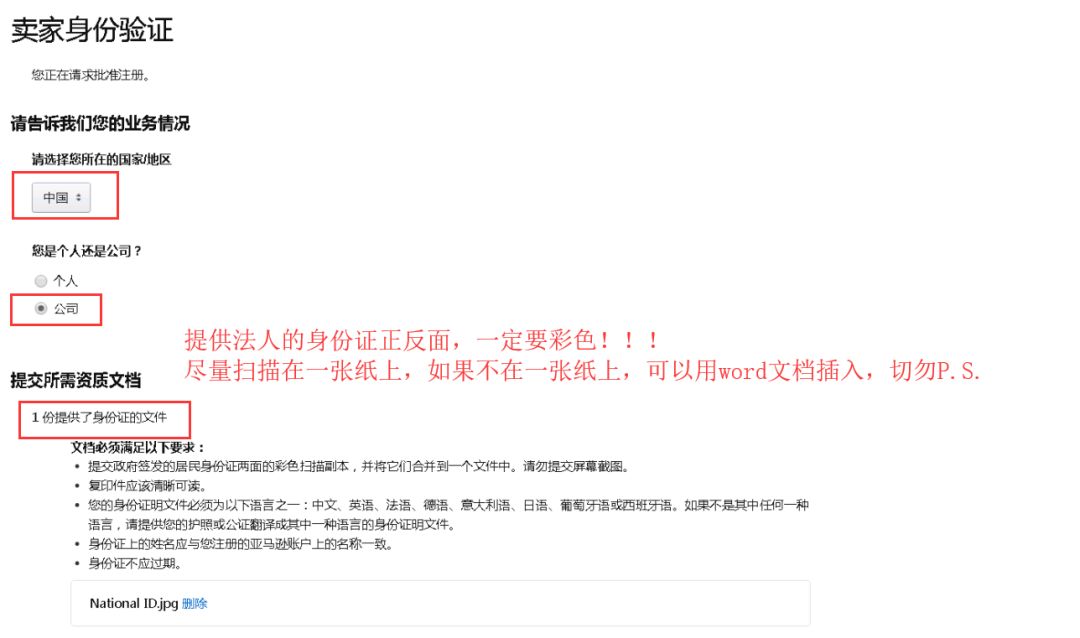 8. 准备好法人身份证和营业执照彩色扫描件(注册成功后会需要提交) 注意:一定要彩色!!一定不要P.S. !!身份证如果不在一张纸上,就用word文档插入正面和反面,不要PS到一张纸上。