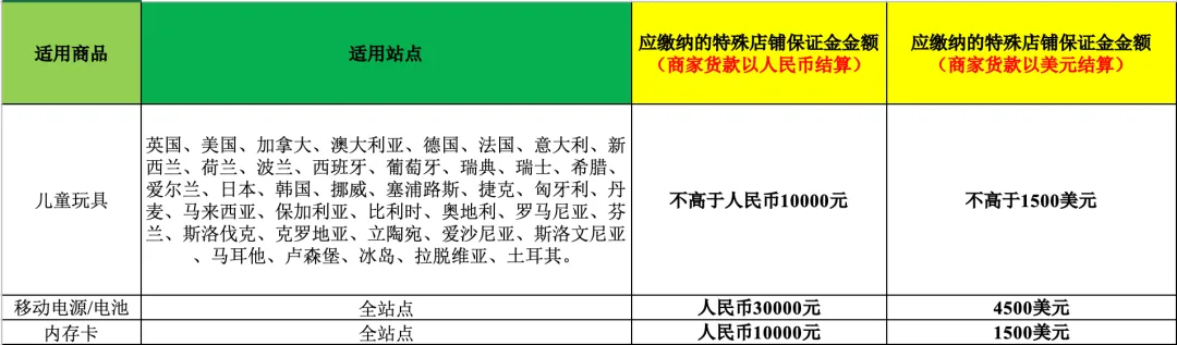 从规则来看,多个高风险类目保证金出现明显上调:儿童玩具类目在39个国家和地区的保证金提高至1万元人民币;移动电源及电池相关类目上调至3万元;内存卡类目则调整为1万元。