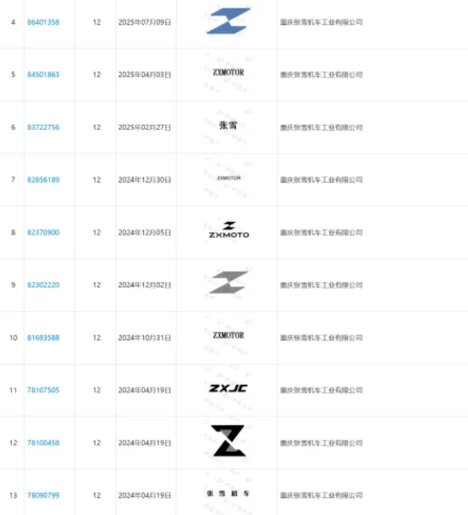 其实,张雪早在公司成立之初,就着手进行了产品系统性商标布局: