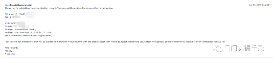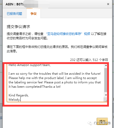 别急!如果是你自己后面想起来忘了贴标,那么可以直接提前和亚马逊客服团队联系让她们帮忙贴标!我这种情况是被发现的,因为是初次出现这种状况,所以只需要同意支付处理费用就行!