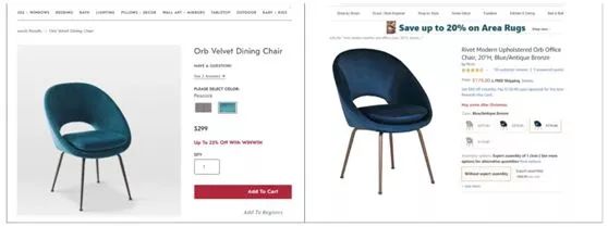 据美国《商业内幕》报道,上周五,美国家具巨头索拿马在法院向亚马逊提起诉讼,控告亚马逊自营家具品牌Rivet剽窃了其旗下品牌WestElm(下文简称“WSI”)的3款专利椅子的设计,分别是OrbDining Chair餐椅、OrbOffice Chair办公椅和SlopeLeather Swivel Office Chair办公椅。