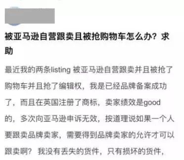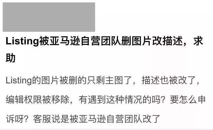有卖家在雨果圈子里求助,称自己的产品被亚马逊自营团队跟卖,连listing都被改了,编辑权也被移除。