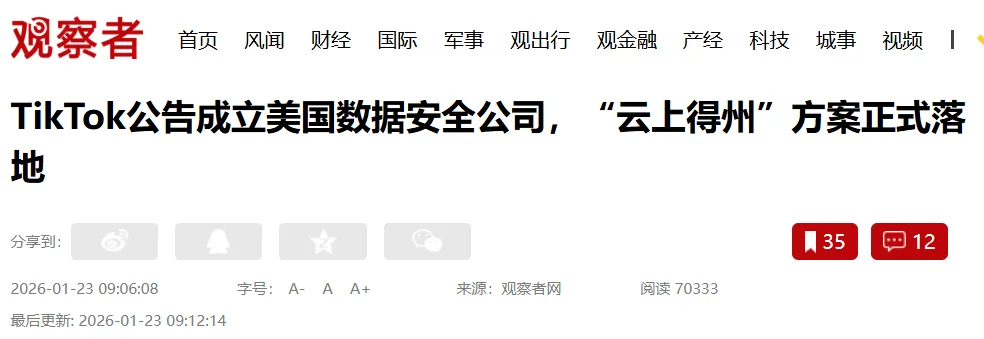 此次故障恰逢TikTok美国业务的关键调整期。1月23日,TikTok USDS合资公司正式成立,美国用户数据开始向由Oracle云环境托管的新架构迁移。故障发生时,系统正处于此次数据迁移后的敏感阶段,其稳定性面临考验。