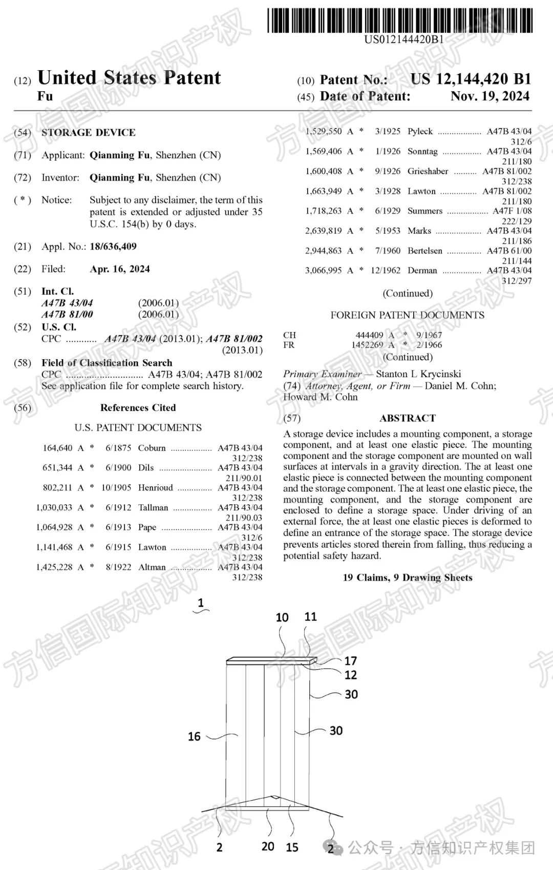 原告Qianming Fu是一位来自深圳的国人卖家,主要生产和销售一款Storage device玩具收纳架。这是一款专为儿童设计的收纳架,专为90°墙角设计,不会占用额外的地面空间,非常适合存放各种大小的毛绒玩具。常态下弹性件自动闭合防止玩具掉落,取物时轻拉即可弹性变形开启,兼顾安全防护与便捷取放。