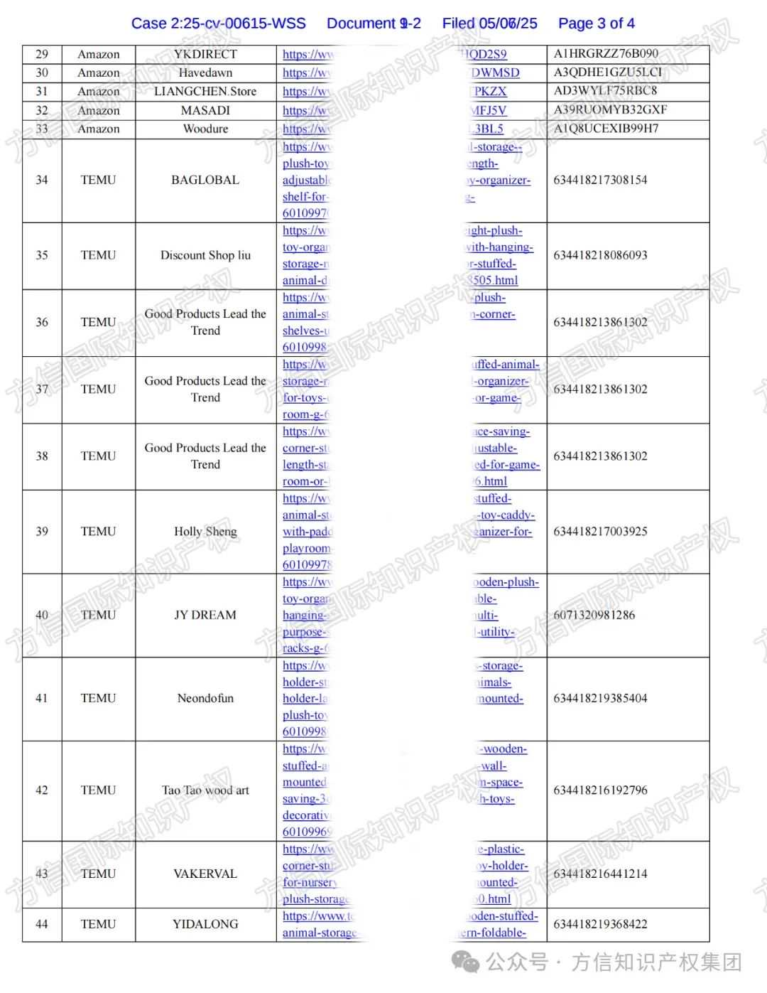 25-cv-615,STORAGE DEVICE玩具收纳架发明专利维权!被告名单已公布!