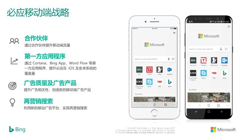 必应搜索在PC端优势强大,同时并未放松于移动端的布局: