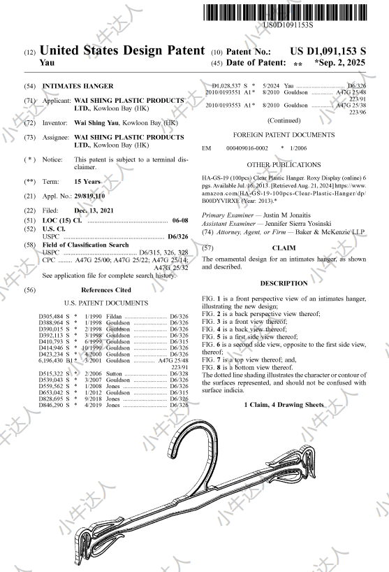 经查询,这款产品于2021年12月13日在美国进行外观专利申请的提交,于2025年9月2日获得了公告。
