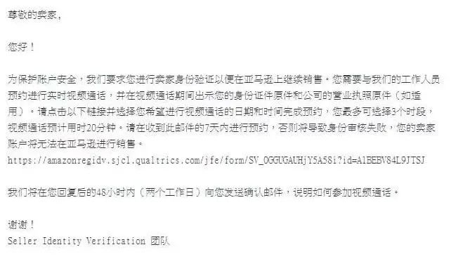 卖家收到的这个视频验证的邮件长这样。