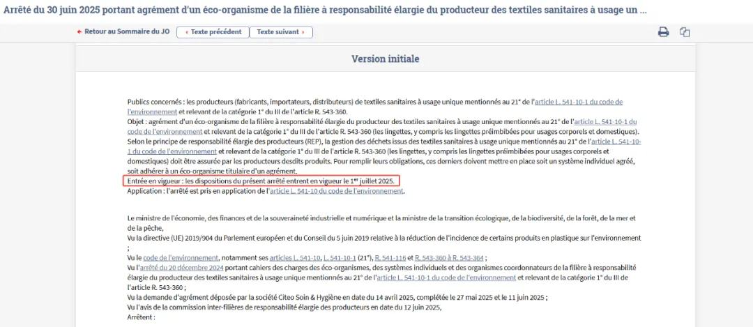 法国EPR(延伸生产者责任)体系不断扩展,一次性卫生纺织品Textiles Sanitaires à Usage Unique(TSUU)已正式成为新的监管重点类目。