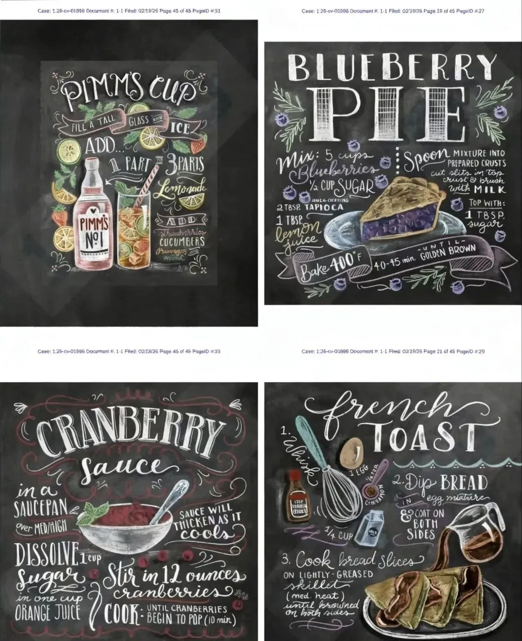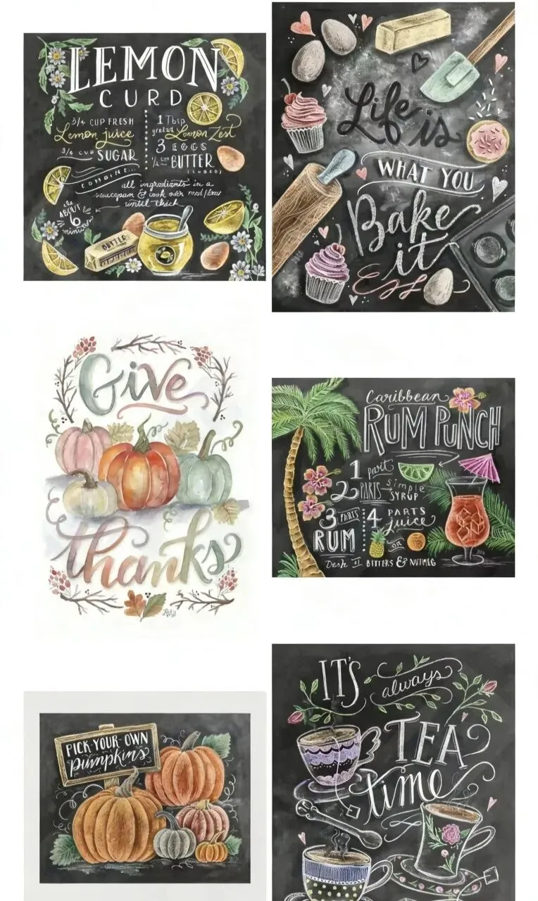 原告Lily & Val, LLC 是2012年创立的美国知名创意设计公司,由艺术家Valerie McKeehan创办,以手绘黑板艺术为核心风格。作品融合花卉、美食、生活美学与法式浪漫元素,采用手写字体与粉笔质感插画,风格温馨治愈。