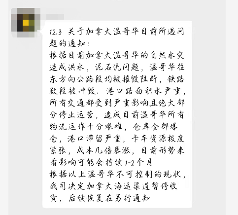 注意!加拿大受洪灾、强降雨影响,部分货代已经发出延误暂停通知