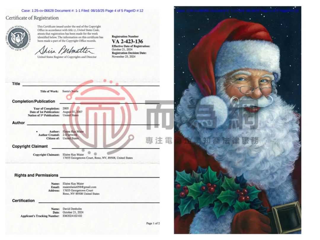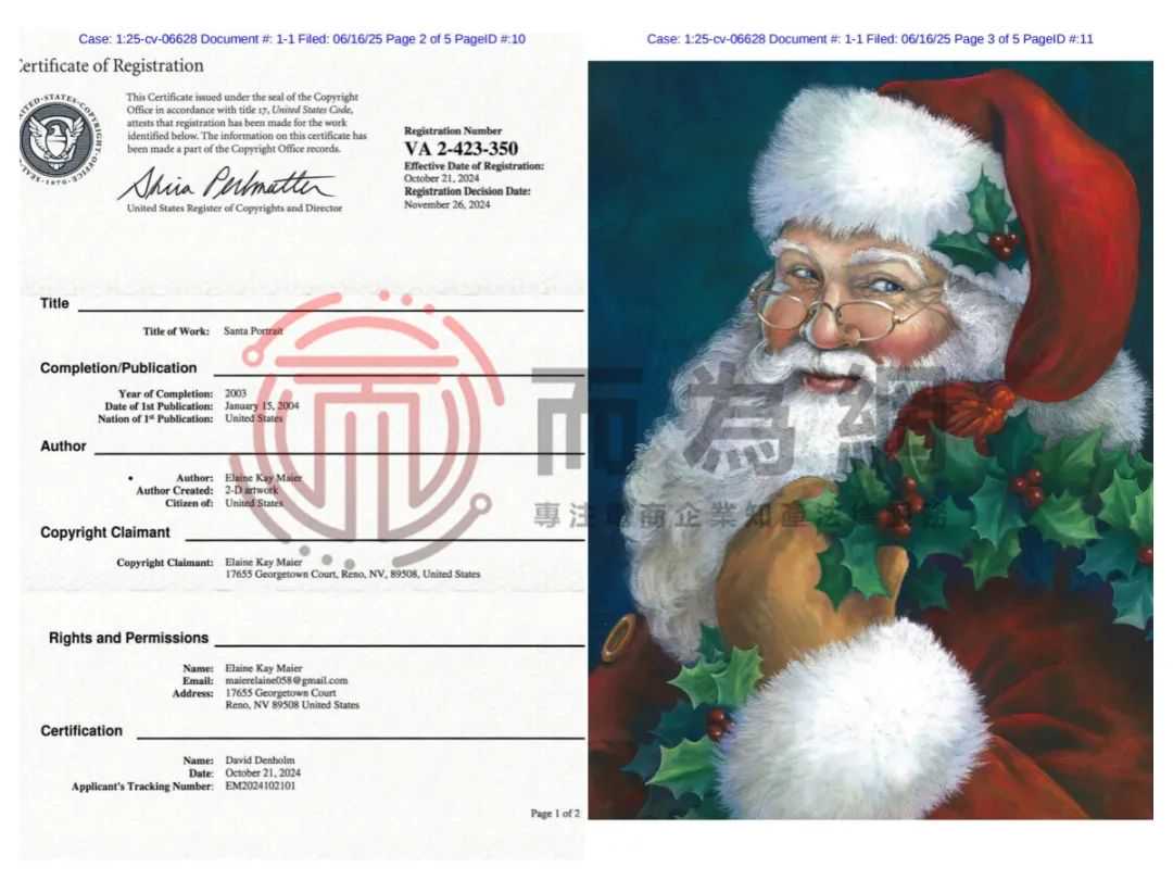 【侵权快讯】25-cv-6628 圣诞节未至,圣诞老人插画版权案件来了!这两张图立刻排查!