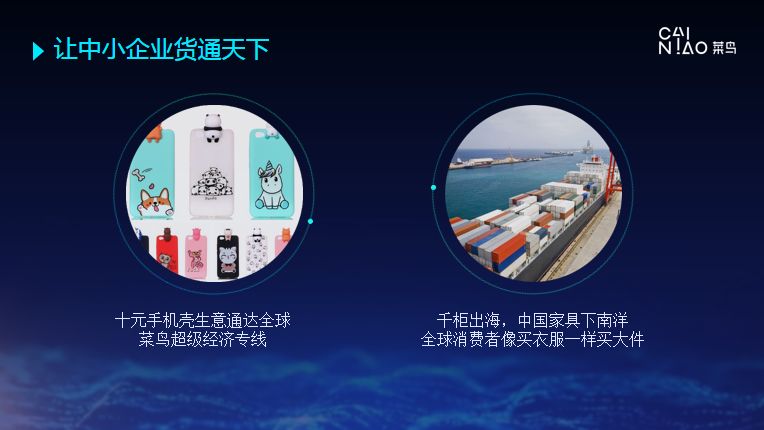 另外的话,去年双11时候,菜鸟和天猫推出了千柜出海项目。通过我们出海项目,不仅仅是商品包裹的快速送达,更重要的是使得大量商品像林氏木业、居家家这样的家居户外品牌,原来从来没有通过跨境电商销售到海外的模式,变成了可能。通过出海的方式,我们让海外的消费者在天猫上采购家居,采购户外用品成为了现实。去年一年他们的海外销售额增长了10余倍,大家可以看到与电商和物流有息息相关的关系。