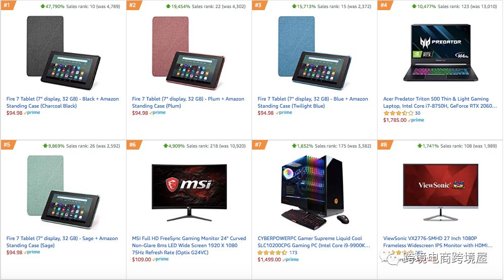 这个Prime Day,几乎每个品类都杀出了黑马。现在就开始研究飙升榜,为接下来年底的黑五、网一、圣诞做选品和运营的准备!