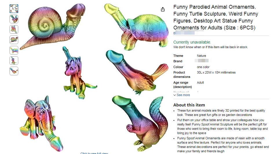 SIGMAXGO 恶搞摆件多采用精细 3D 打印或树脂材质制作,表面质感细腻,设计风格诙谐幽默,常见于花园草坪、客厅书桌、卧室摆设,也被当作“恶作剧礼物”送给朋友,带来轻松氛围。这类产品因造型新奇而广受关注,也成为维权的重点对象。