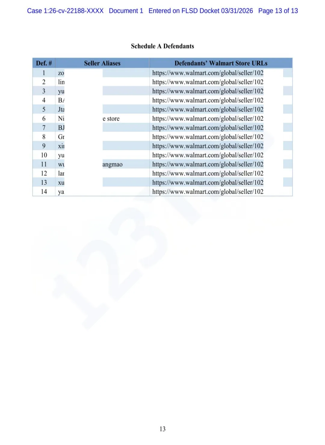 33名沃尔玛卖家中伏Gastropod、ACDANC、RAGUPEL商标