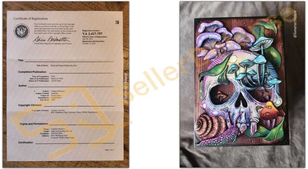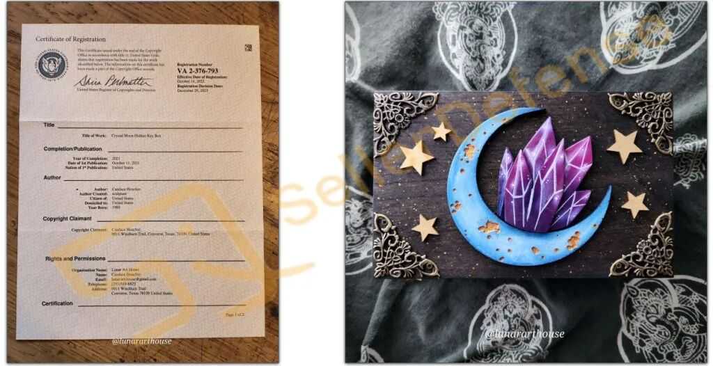 原告 Candace Houchin是一位美国艺术家,以手工木制艺术盒设计闻名,其作品融合了色彩、木工技艺和奇幻元素。