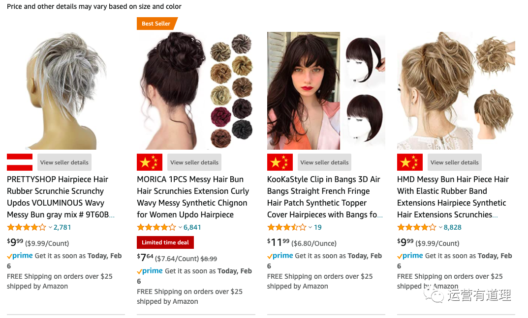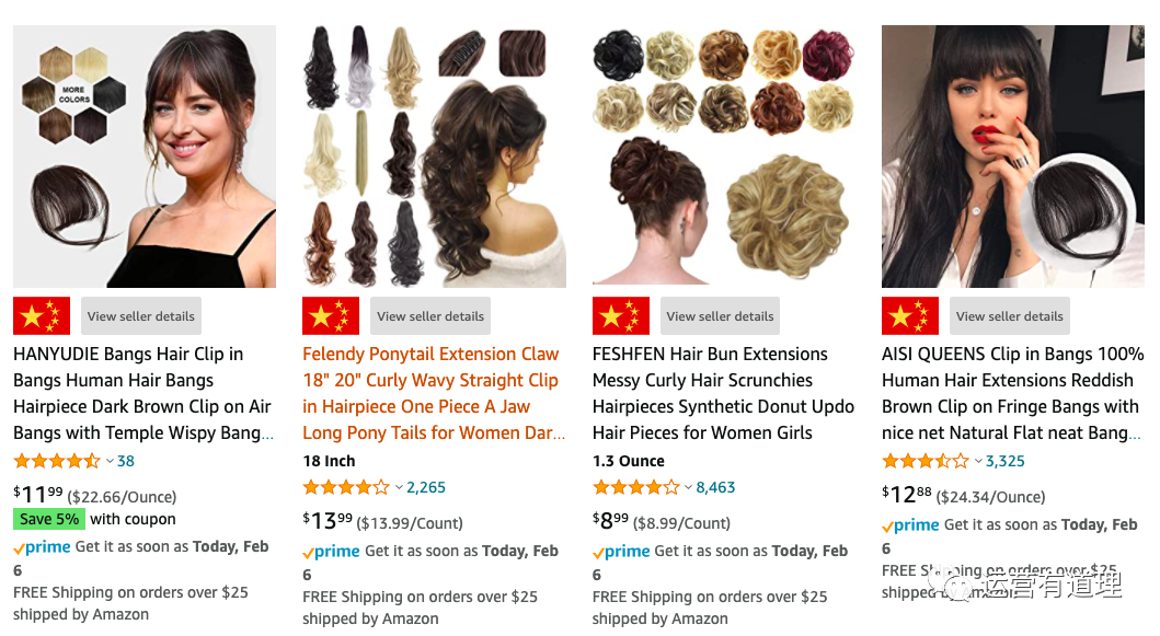 我们再输入 hairpieces 这个关键词,发现基本也是被中国卖家垄断