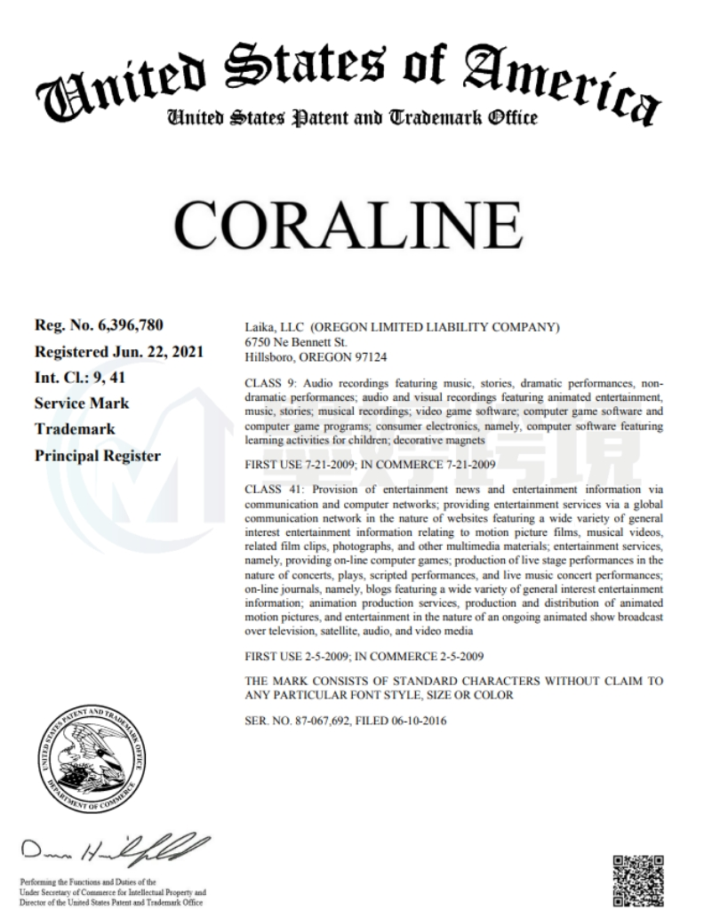 本案为商标+版权侵权,涉及原告旗下3张版权图和1个商标词,维权关键词:CORALINE,注册在第9类主要涵盖电子及科技产品,如计算机、软件、通讯设备等,第41类则涉及教育、培训、娱乐、文化活动与出版服务;