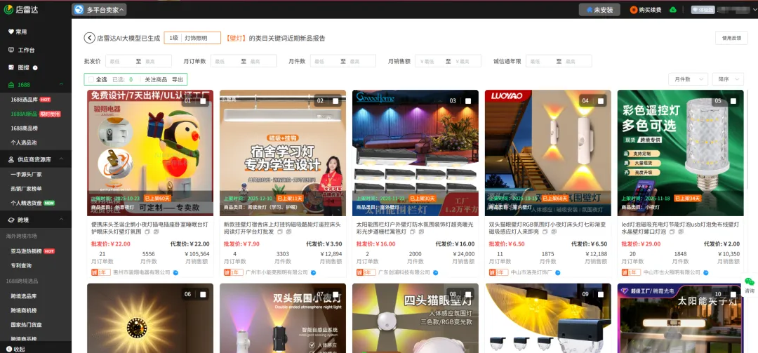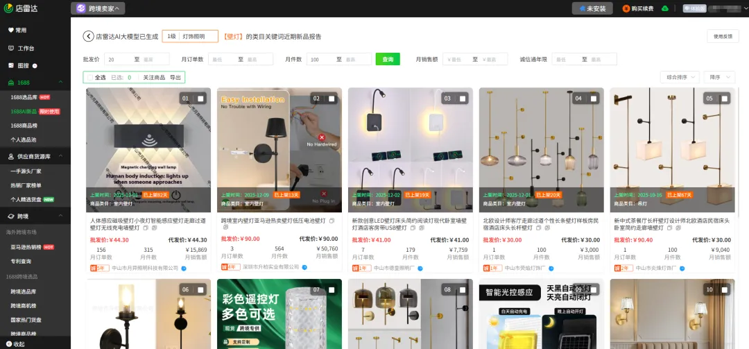 1688的搜索逻辑其实是偏向“热销”的。你搜一个“壁灯”,跳出来的往往是那些卖了几万件的老款。想要找到那种刚上架、有新意、还没起量的产品,无异于大海捞针。