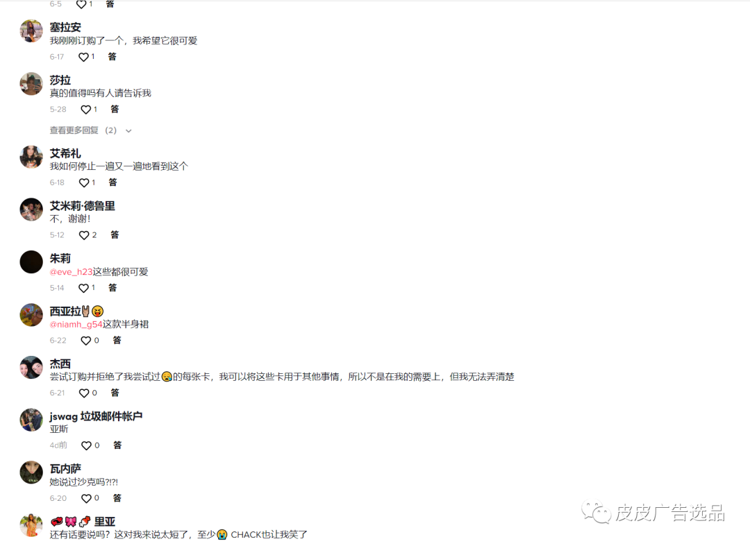粉丝们在下面留言,觉得这条裙子很可爱,想购买尝试,并且上图有个粉丝评论,她如何停止,一遍又一遍的看到这条广告,从这个细节可以看出网站的投放力度大。