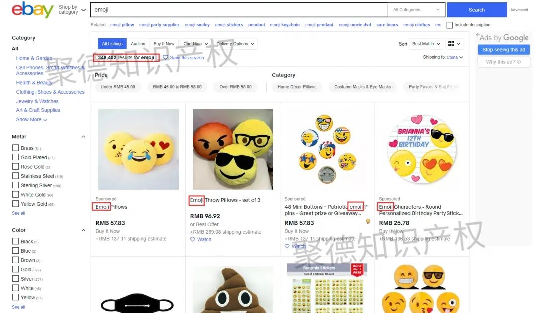 小编仅用关键词“Emoji”在各平台搜索了下刊登结果,发现每个平台在使用该词组的链接波及面还是相当地广的,以下是可能涉及侵权的刊登截图示例,大家千万要提高警惕!