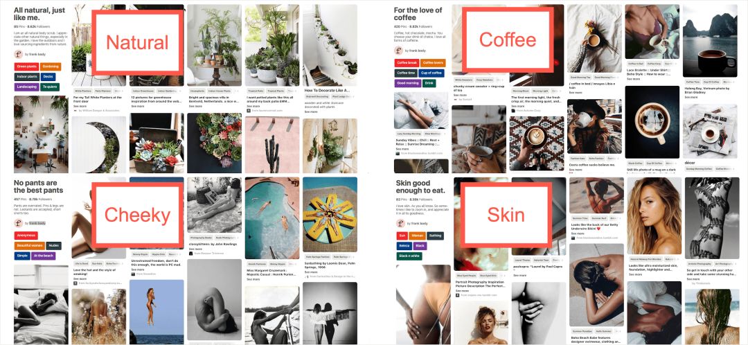 在这方面,Frank Body的内容营销定位非常明确,用户真正关心的并非是是咖啡磨砂膏,他们在乎是时尚、健康护肤、天然产品、咖啡以及有一点点“出格”。Frank Body的内容策略也旨在捕捉这种生活方式。他们甚至还创建了Pinterest用户群组专注于用户的爱好。