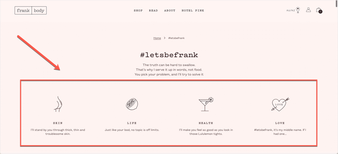 消费者购买的不仅仅是一款咖啡磨砂膏,而是一种生活方式。Frank Body的所有营销都基于用户的四大价值观:皮肤、生活、健康和爱。