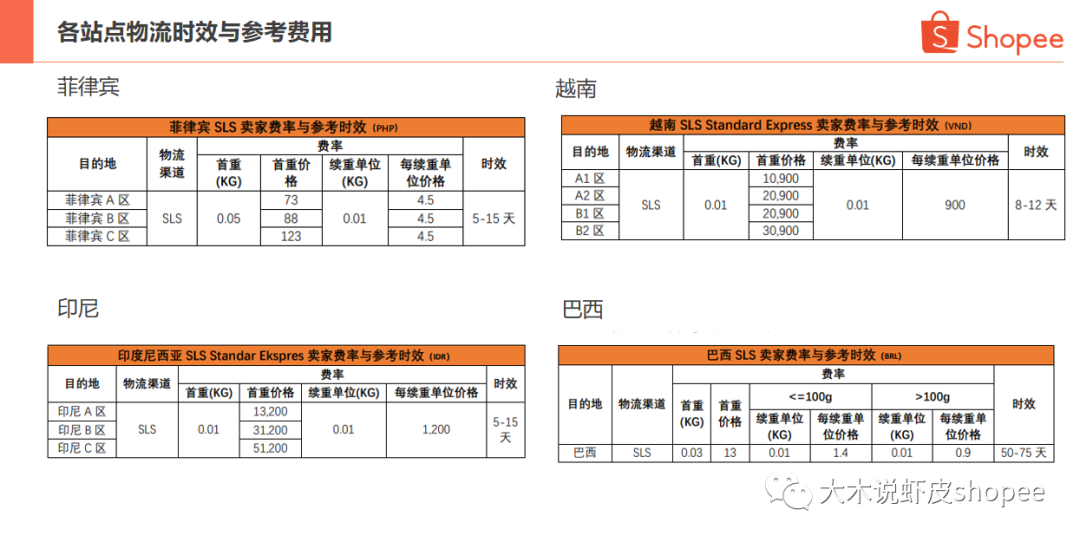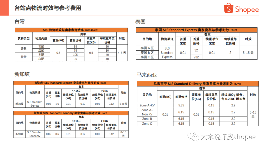 国外的物流其实分成两部分 首重+续重。为什么要分成这两个板块,虾皮将这个区分的很明显,所有站点都是买家承担订单的首重,卖家承担订单的续重。这也是我们常说的藏价最主要的部分。举个例子,台湾的首重是500G,费用是60台币,是由买家承担。就是这个订单有600克的话,就是首重+一个续重单位,运费就是60台币(买家承担)+30台币。那我们需要支付的就是30台币。