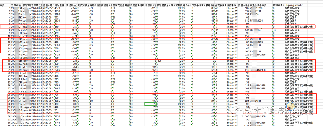 月销售量超过1000订单量的店铺,我们都会采取抽查的方式,随机抽选50个(5%)的订单实际核算我们的订单成本,看与虾皮实际扣费时候相符。
