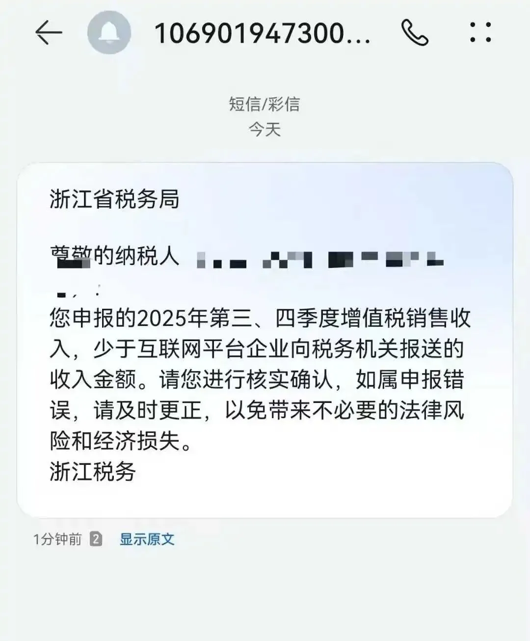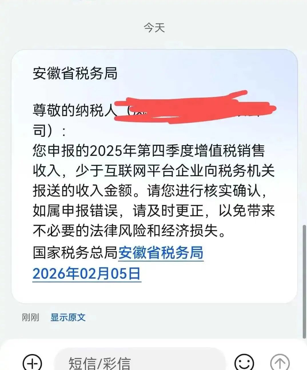 从时间上看,第四季度平台涉税数据通常在 1 月底完成集中报送,而此次短信在 2 月初便已陆续发出,距离相关申报截止时间仅剩十余天。相比以往在申报结束后再进行核查的节奏,本轮预警明显更为前置。