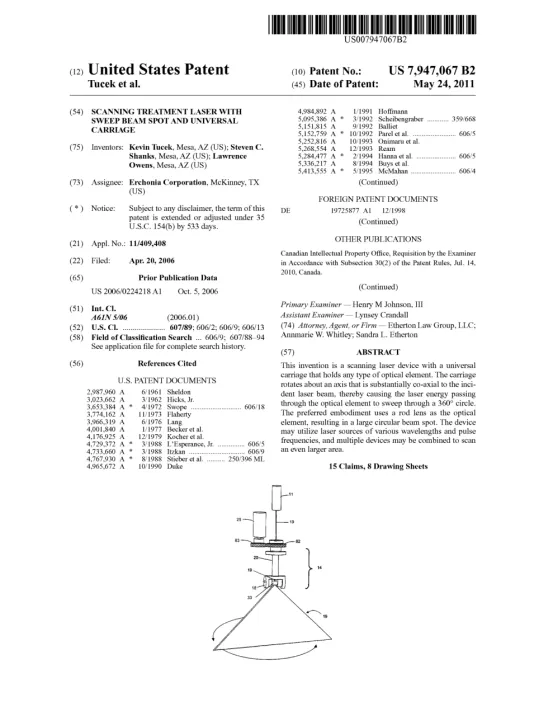 2025年9月3日这款激光减脂仪发起2项专利TRO,案件号:25-cv-10548、25-cv-105605;侵权类型:发明专利;专利标题:带扫描光束点和通用滑架的扫描治疗激光器、使用波长小于 632 nm 的激光能量的非侵入性减肥方法。
