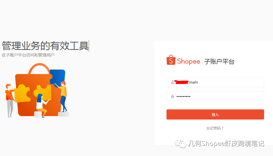主账户后台链接:https://subaccount.shopee.com/login/