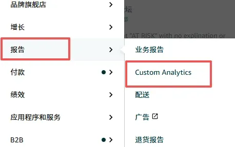 登录卖家后台,在顶部导航栏找到报告模块,点击进入自定义分析页面。
