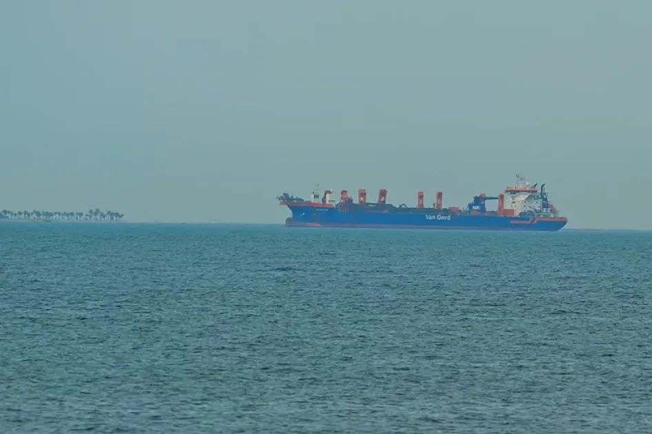 3月2日,船只因霍尔木兹海峡禁航而停泊在迪拜海岸。