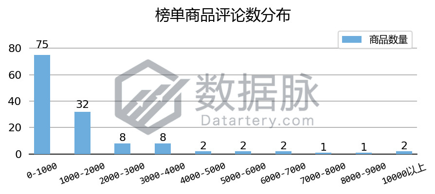 在上周 Kitchen & Dining 品类的 Hot New Releases 榜单中,单个商品拥有的最大评论数为 27849.00条,最小评论数为0.00条,平均评论数为1535.74条,评论平均星级为4.29星。 其中,56.39%的上榜商品评论数不超过1000条,另有24.06%的上榜商品评论数在1000-2000条之间,此外有2款上榜商品的评论数超过了10000条,占 上榜商品总数 的1.50%。同时,骆探长(shujumai.com)发现,与上期分析相比,该周进入 Hot New Releases 榜单的商品整体平均评论数有较大幅度减少,新品上榜空间进一步增大。