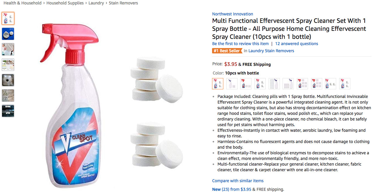 此外,品牌Northwest Innovation的家用清洁剂一路持续走高,在8月8日-8月12日期间连续5天位列榜单第一,最终以平均排名9.57的不俗成绩位列商品综合排名第三,骆 探长(shujumai.com)发现,该款商品目前评论量与平均星级均暂为零。