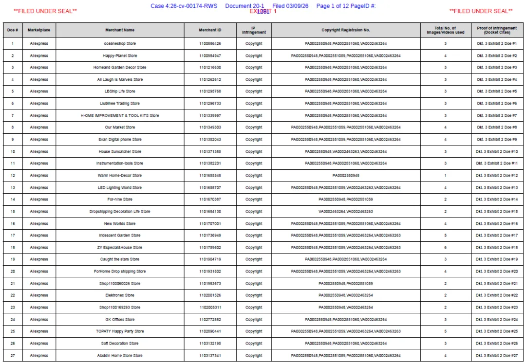 原告Guangzhou Youran Network Technology Co., Ltd.是广州的一家外贸公司,案件涉及以下产品: