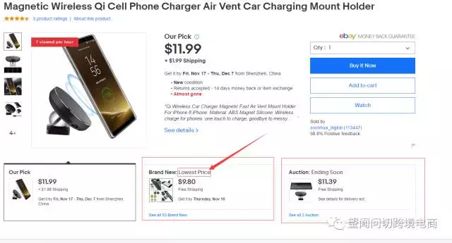 基本上大家可以看到,出现在里面的产品价格大多数其实是高于市场排名前几位的卖家的价格的,而我们很多卖家其实价格是低于排名前面几位的,所以,我指的用lowest price 占据主listing下面主要3个显示框之一的醒目位置流量大家可以理解我的用意了吧!