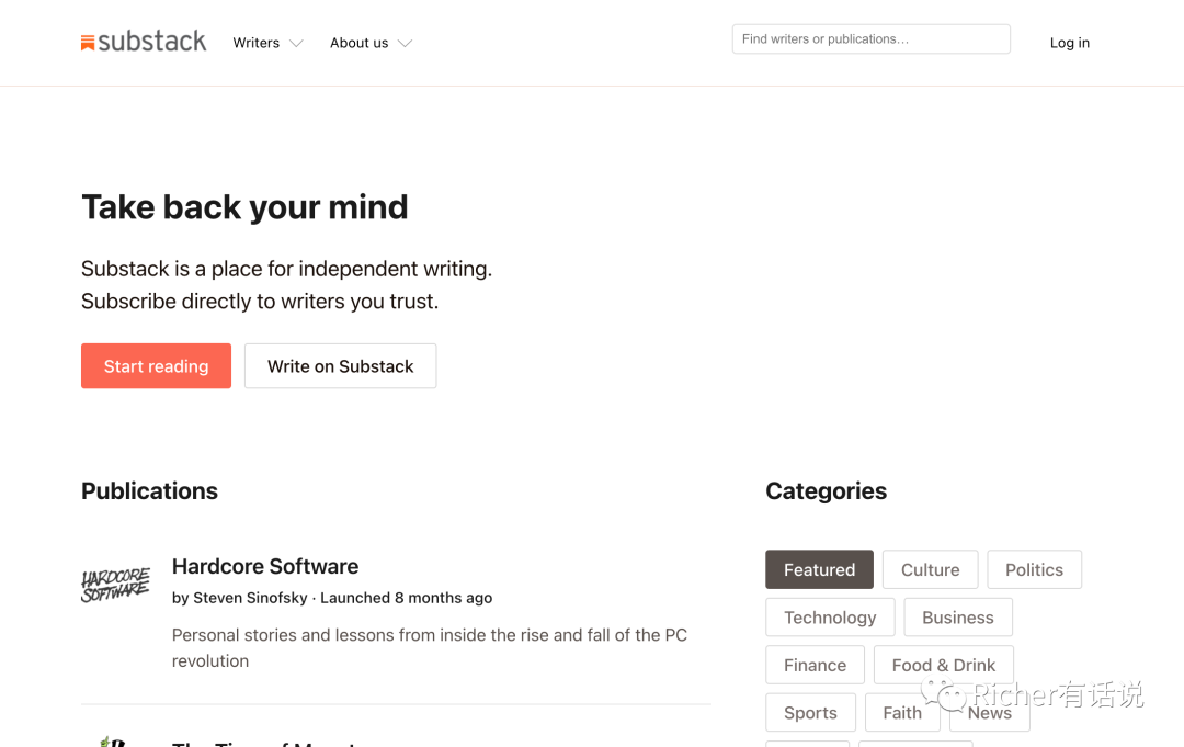 说起内容经济的独立站,就不能不说独角兽Substack。2021年三月Substack获得A16Z的6500万美金投资。一个对媒体狂热的基金重仓了这样一个项目。这值得思考。大部分媒体报道这篇新闻说这就是一个美国的公众号,这个理解我不认同,底层上是有本质的区别的。