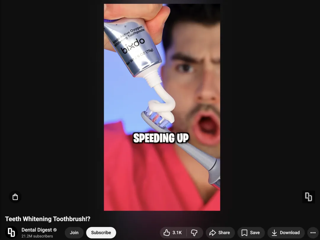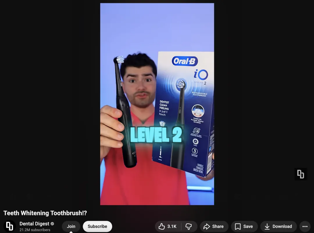 为了实现这一愿景,Bixdo 选择与拥有 2120 万订阅者的牙科医生 Dr. Anthony Baroud 深度捆绑,借由他全球顶尖的口腔护理频道 Dental Digest,将蓝光技术的魅力转化为了令数千万人为之疯狂的“视觉盛宴”。