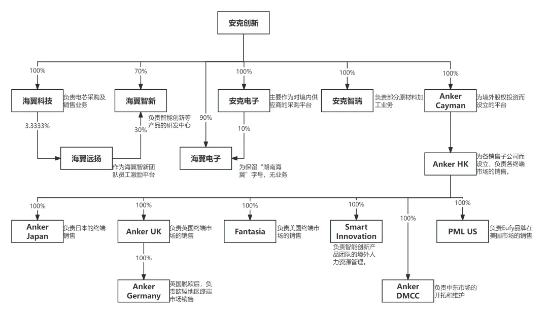 更关键的是,安克的结构不只是简单的“壳公司堆砌”,而是每一层都有真实团队和职能: