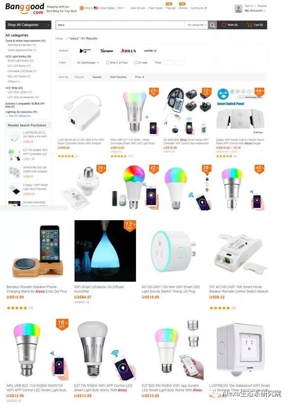这两家公司因为品牌较多,就不从其亚马逊的销售站点来分析了,产品从其独立站来看,两家公司基本把目前市面上支持Alexa的产品一网打尽,尤其是环球易购