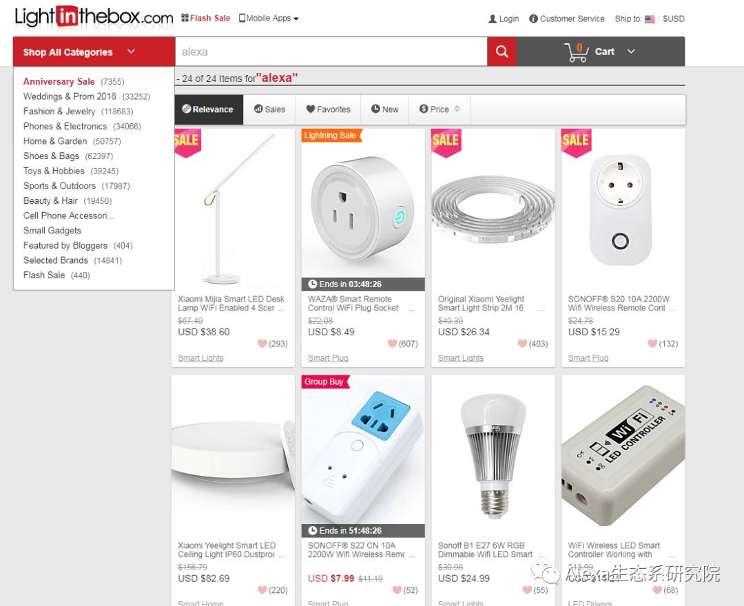 末了还是要说下这家较早进入跨境电商行业公司,兰亭集势目前的产品在其官网上,我们也可以发现部分的Works with Alexa的产品。