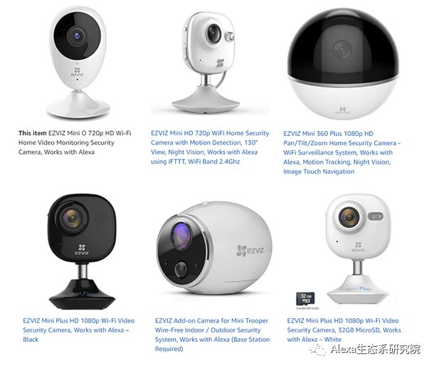 海康EZVIZ品牌的摄像机,价格比较亲民,支持Alexa的摄像机在美国亚马逊上是在39-100美金的价格区间。产品销量较大。在监控摄像机这个类目还有两家大卖,分别是Yi和Zmodo