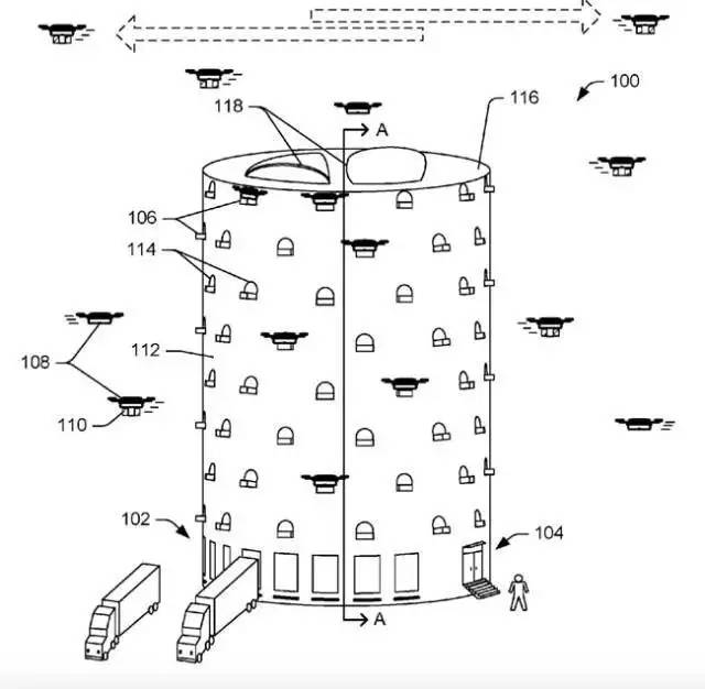 一根高高大大的棒子,笔直地耸立在城市之中(密恐犯了),不断有无人机从上面飞出来。