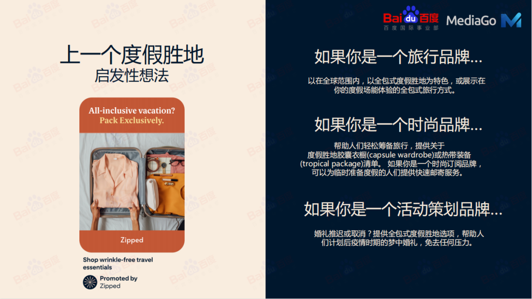 如果你是一个旅行品牌,开发或展现你#全包式 度假的无忧与便捷; 如果你是一个时尚品牌,#便携式的随身衣橱,衣帽配饰等搭配清单,将吸引Z世代消费者群体的注意; 如果你是一个活动策划品牌,举办#无压式的欢庆活动将更合消费受众的心意。